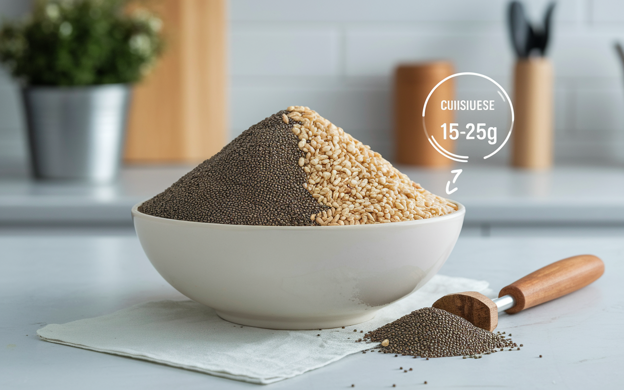 Pour répondre sans détour : la dose idéale pour stimuler la perte de poids se situe le plus souvent entre 15 et 25 g par jour c’est-à-dire environ 2 à 3 cuillères à soupe, notamment pour le chia ou le lin. Ce repère, largement partagé par les nutritionnistes (comme en témoigne aussi le site Passeport Santé), permet de profiter de l’effet coupe-faim tout en évitant inconfort digestif et excès de calories. Ce dosage de base convient à la grande majorité des adultes en bonne santé.